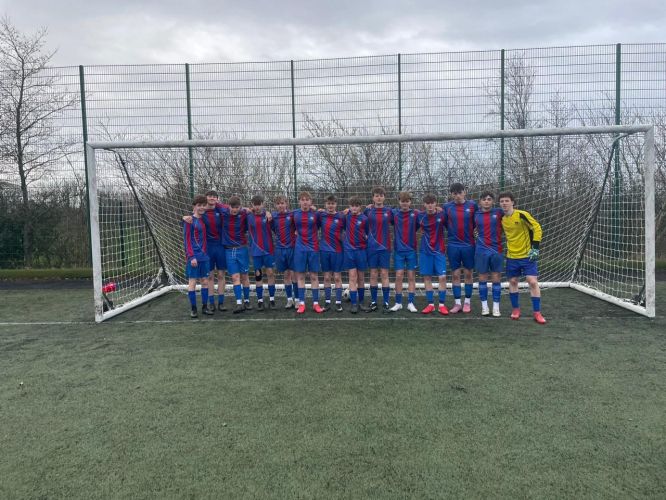 The Year 10s kicked off the football season with the Douglas derby vs Ballakermeen. With this group of players previously winning the Year 8 and Year 9 competitions, it was an exciting team to watch play football again. This was demonstrated just 15 seconds into the game, when Captain Ffinlo Thomas picked up the ball on the touchline, beat a man and slid striker Thomas Lamb through on goal, who from a tight angle smashed the ball across the keeper to give the Saints a lightning quick start. The high intensity continued, with Harry Shields picking up on a lose ball in the box to fire home to make it 2-0, and a brilliant volley from Joel Prentice into the top corner to put St. Ninian's 3-0 after just 7 minutes played. The Saints then started to control the game at this moment, with midfielder Sam Sadler having a real influence on the game, progressing the ball from midfield to attack. The Saints struck again with a high press from Ffinlo from the goal kick, which panicked the Balla defender and Thomas Lamb slotted home for his second of the game and a 4-0 lead to the Saints. Fullback Joel Prentice then added a second goal of the game with an absolute wonder strike, hitting a volley from 30 yards which flew into the top corner to make it 5-0. Dynamic midfielder Harry Shields then matched this with a worldie of his own, shooting from the 35 yards past the scrambling keeper, giving the Saints a massive 6-0 lead at half time. Very few areas of improvement to be said at half time, with the only consideration that the lads would be playing against the wind in the second half. This proved a challenge for the Saints, struggling to really kick on. Goalkeeper Jacob Smith and defenders Josh Corran and JJ Cosgrove helped with this, playing long balls from the back. Despite the second half struggles, the Saints had room for one more goal. Ffinlo Thomas showed great resilience on the left hand side, chasing a lost cause, winning the ball back, beating 2 men and drilling the ball across the box, where Bobby Kewley slotted home nicely from a tight angle - a goal which his performance deserved, to make it 7-0. Ballakermeen showed fantastic character to keep pushing and were rewarded with a late consolation goal, which was a long shot from 25 yards. SNHS missed a lot of chances in the second half, but so many positives to take for the first game of the Year 10 Football season. The score line finished 7-1 to St. Ninian's in a statement victory. Man of the Match could have been any of the 14 lads who played, as every single player put in a brilliant performance. Captain Ffinlo Thomas, set a great example, both with his on and off the ball quality he demonstrated and special mentions to fullbacks Lenny Bumfrey for his calmness on the ball and Joel Prentice for his two fantastic volleys.