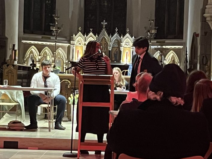 The setting gave the evening a formal and memorable atmosphere, with choir performances and a poetry reading from the former Manx Youth Bard. Students from both schools presented their arguments clearly and respectfully, and the discussion was lively throughout. The dedication shown to research by both teams and preparation over the course of the last three months was clear through their efforts.